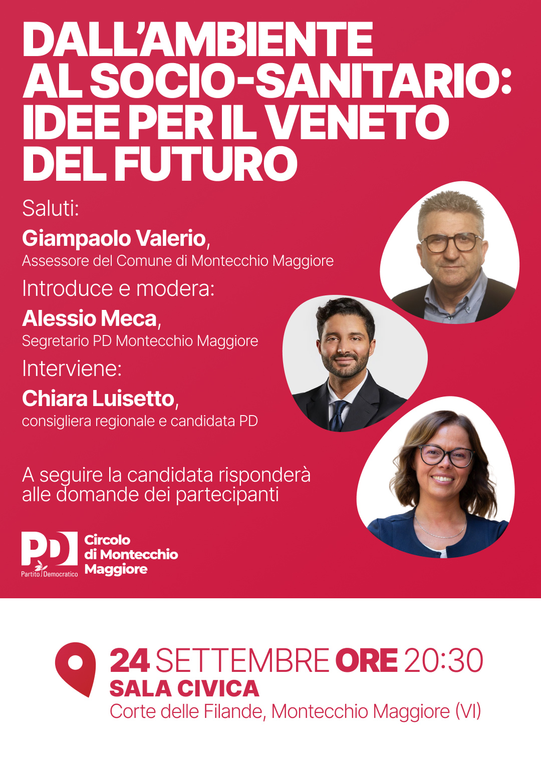 Introduce e modera: Alessio Meca, Segretario PD Montecchio Maggiore