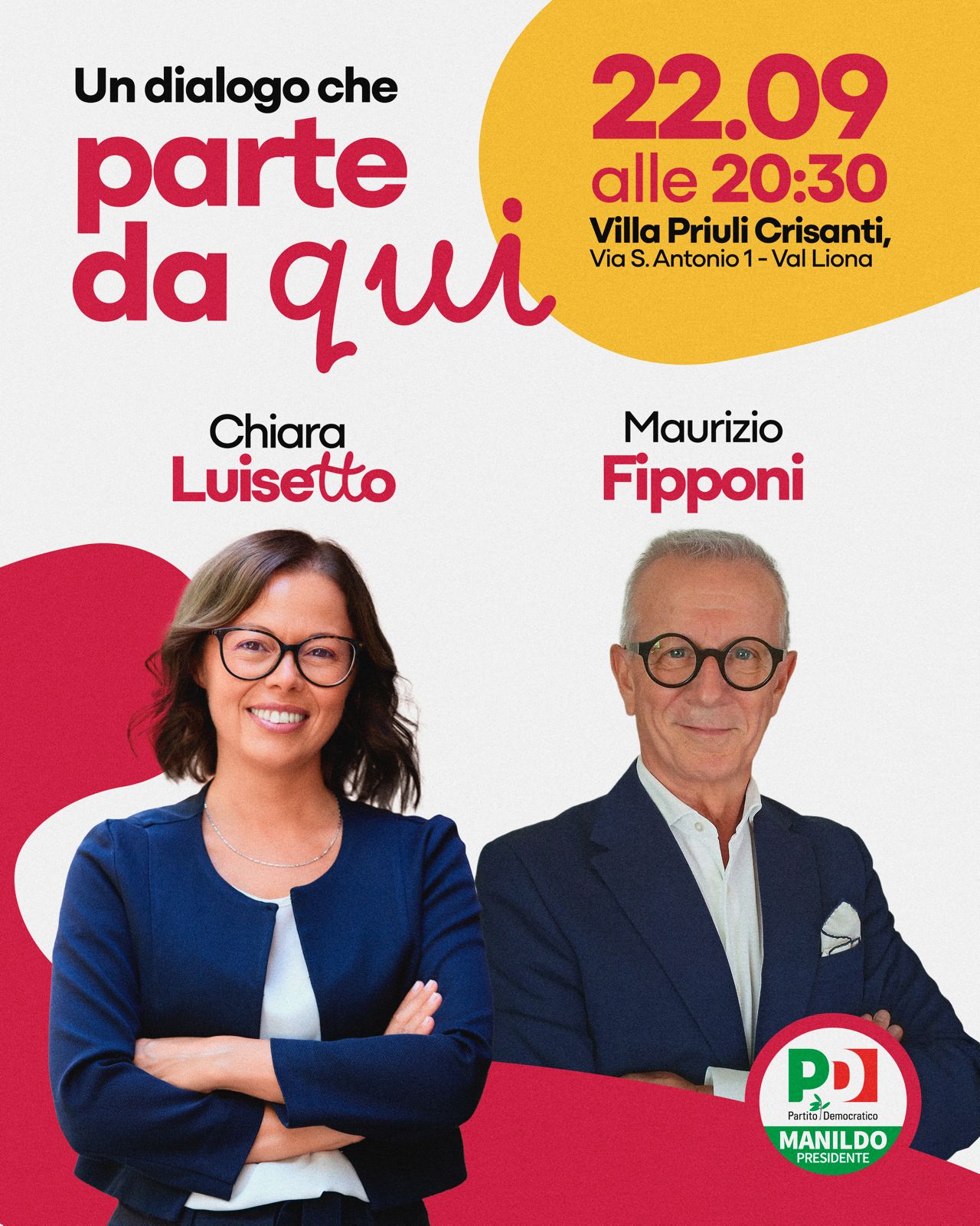 Dialogo tra Chiara Luisetto, consigliera regionale del Veneto e Maurizio Fipponi, entrambi candidati alle prossime regionali a Vicenza nella lista PD a sostegno di Manildo presidente.